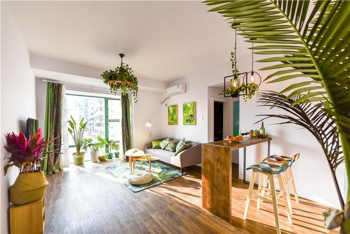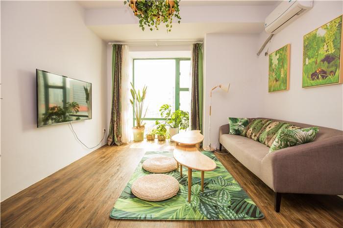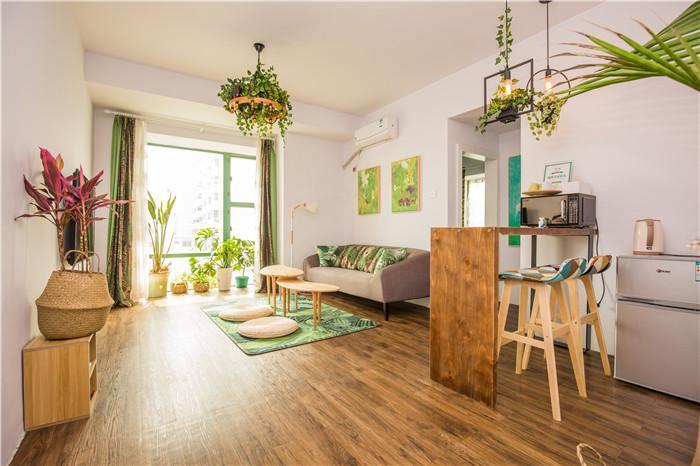 广州一年四季树叶常绿,基于这样的气候房东设计了这套房子,并取名为【仲夏夜之梦】。房间内由深深浅浅的绿装饰,希望即使在夏夜你的梦里也有凉风吹过。