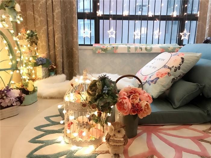 这是一个完完全全出于为了满足少女心而设计的房子,【bulingbuling的灯串】闪烁起来如同夏天的夜空,烘托气氛和拍摄必备。【洁白柔软的大地毯】赤足踩上去的触感非常棒。【鲜艳欲滴的大盆绿植】不仅仅是净化空气,更是带来了野外的生气,当你入住时请不要忘了浇水。