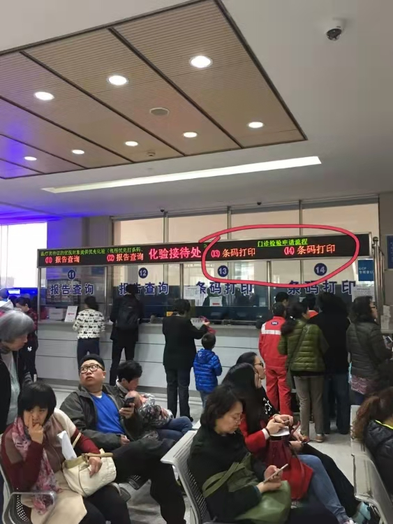 步骤2: 窗口排队叫号等验血,抽血时会告诉你何时取报告