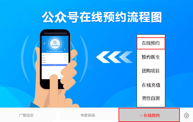 END为提升服务效率,实现即到即查,您可以通过公众号在线预约挂号!陕西广慈泌尿专科医院官方公众号温馨提醒您【在线预约】就诊还可以【免收挂号费】!