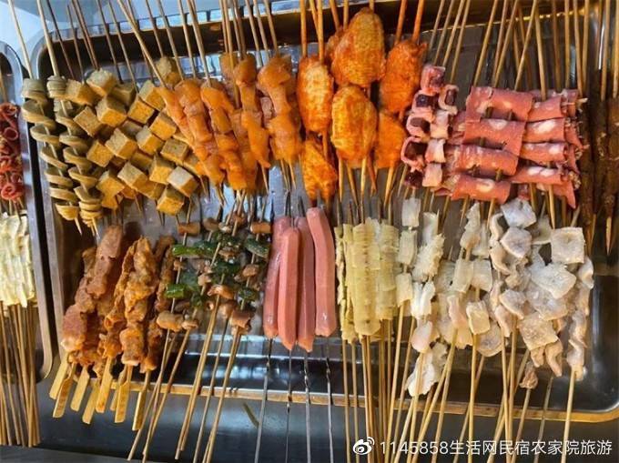 自助烧烤食材包括:羊肉串、鸡肉串、鸡心、鸡胗、小腰、骨肉相连、奥尔良鸡翅、烤肠、板筋、鱼豆腐、鱼丸、面筋、茄子、韭菜、大蒜、土豆、馒头片等应季蔬菜40余种供您品尝。喜欢烧烤的人一定不能错过,滋滋冒油的肉串,外皮酥香,再撒上孜然和辣椒粉,一口下去简直停不下来。