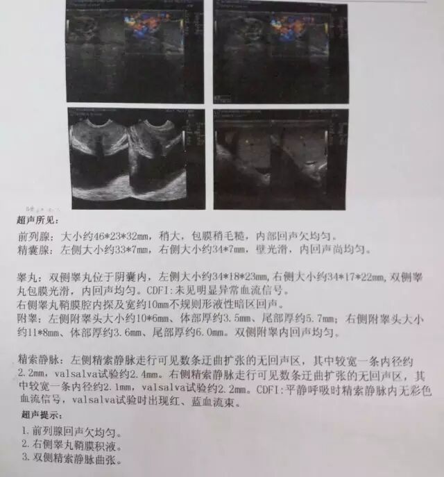 1、阴囊B超:观察睾丸、附睾的疾病以及精索静脉曲张有无。