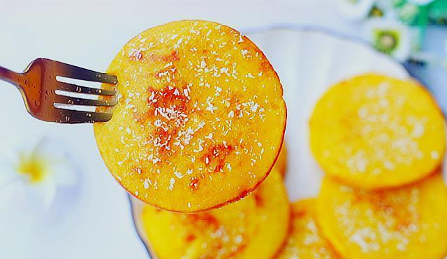 这样做的南瓜饼,色彩金黄,外焦里嫩,清爽缓口,出锅那一刻,看饿了。南瓜的香甜和莲蓉的清香结合,吃起来满口都是香味,表皮有椰蓉的香脆和奶粉的香浓,咬下去开始脆,接着是软糯的南瓜裹挟着莲蓉的清爽,让人回味无穷。