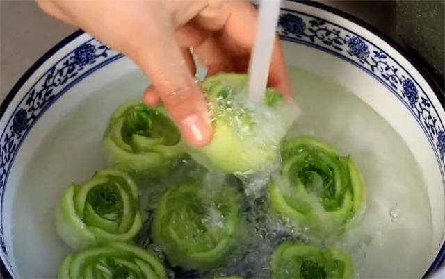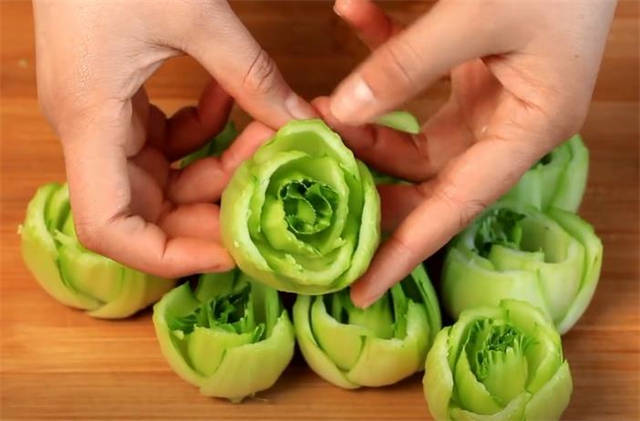 1.先把上海青的头部切下来,看一下非常漂亮,像玫瑰花一样。