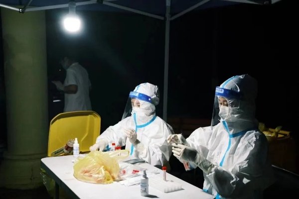 去核酸采样的人员基本上都是没日没夜的状态,每天忙碌到深夜,甚至凌晨,第二天7点又已经就位准备进行采样工作。“我们每天的问候语就是,噢!你的眼睛也充血了呀?”参与核酸支援工作的熊娅明说。然而在没有地铁、没有公交车、没有出租车,甚至有的医务人员连单车都没有的情况下,他们没有一句抱怨,都准时赶到支援社区,全身心投入到抗疫工作中。