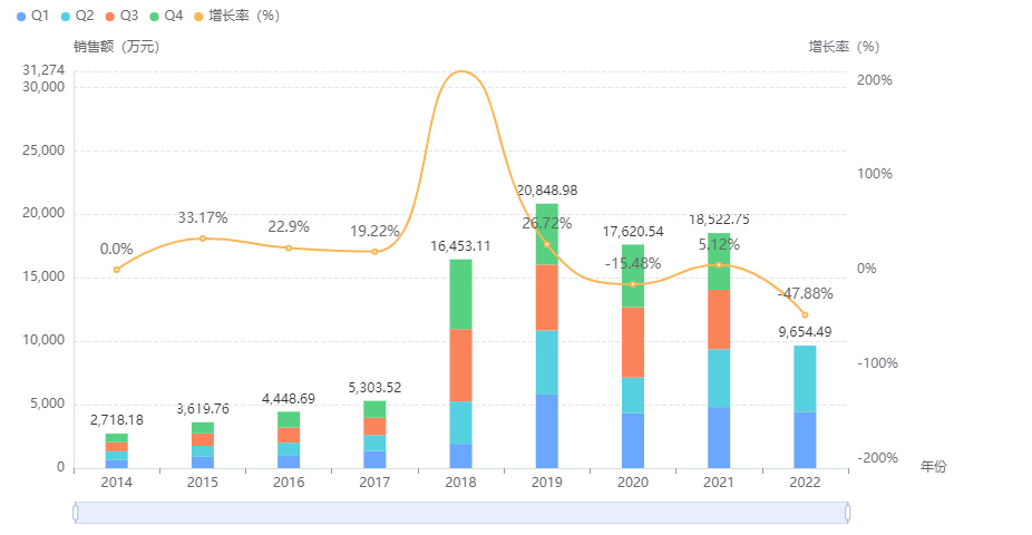据药融云数据统计,苯巴比妥近年来在我国院内的市场趋于饱和,为超亿元大品种。其中,该药于2018年首次突破亿元大关,同比增长210%,2019年销售额再次节节升高,一举达到两亿,但后两年销售额却出现下滑。药融云全国医院销售数据库于近期更新了2022年Q2的药品销售额,苯巴比妥H1的销售额已有9.6万元,预计全年有望再次突破两亿。