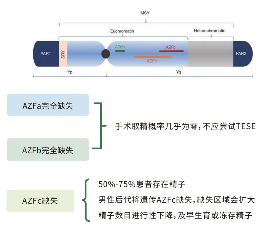 AZFa或AZFb完全缺失TESE预后非常差。TESE推荐用于AZFc缺失的男性,成功率高达约80%