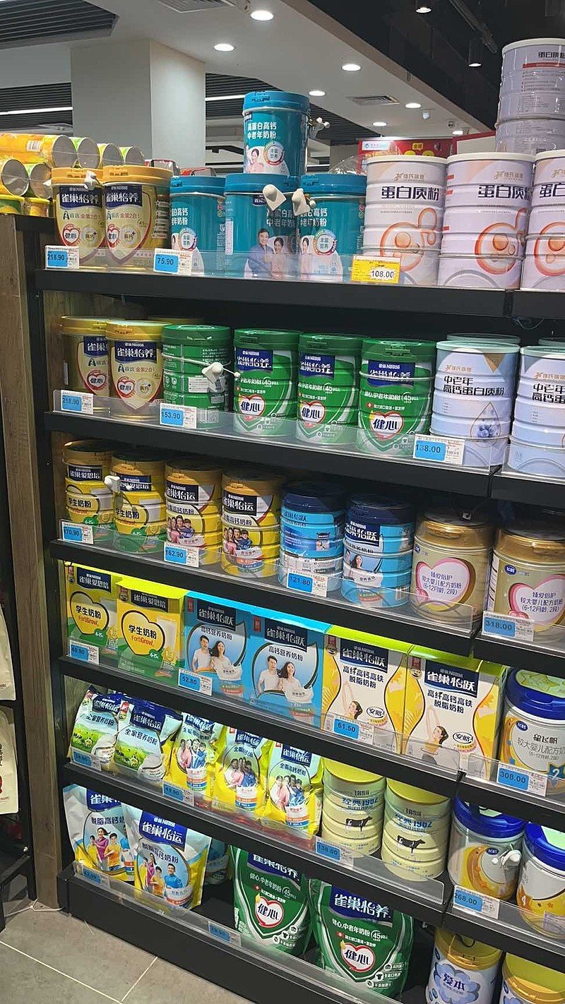 广州人和最大超市乳制品调研(超市特别大,地铁站附近)1.牛奶常温牛奶靠近收银位置有6个货架,伊利2个货架在收银中间位置挺好人流最大,蒙牛2个靠近右边,其他的牛奶杂七杂八包括旺仔光明燕塘等共用2个货架。(有很多推销员,我没敢拍照,有个非常漂亮小姐姐推销员)超市中间位置人流很大,还有一个货架摆放伊利金典牛奶,有一个冰箱摆放伊利的各种牛奶。这些待遇蒙牛和其他品牌没有。(拍照了)低温牛奶有一个长长的冰柜摆放,低温牛奶伊利和蒙牛摆放位置都是占据四分之一,其他的是光明燕塘等各种品牌。有专业的推销员在,还会让路过的人品尝,她一直看着我,我没敢拍照。2.奶粉婴儿奶粉,主要有伊利,雀巢,合生元,君乐宝。伊利的摆放位置占据了超过4分之一,是最多的。伊利的成年人奶粉也摆放在了婴儿奶粉的位置,因此伊利占据的位置真的多,品类特别丰富。(拍照了)成年人奶粉以及老年人奶粉,在婴儿奶粉右边有个独立位置摆放,品牌只有伊利和君乐宝。君乐宝很少,大部分是伊利的。伊利品类非常丰富。(拍照了,有导购员,所以我偷拍拍的不好)3.奶酪奶酪主要有伊利,妙可蓝多,百吉福等。伊利占据了四分之一位置,和妙可蓝多相当。还看到伊利的芝士片也是摆放奶酪位置。伊利奶酪位置最好,位于头部人流量最好位置。4.雪糕冰淇淋这个大超市出现的雪糕和冰淇淋特别多品牌种类,比如雀巢,钟薛,伊利,蒙牛等很多品牌。伊利价格高中低都有,品类最丰富。占据的摆放位置大约四分之一左右。雀巢比伊利少,蒙牛比雀巢少。总结:伊利的奶粉业务在我调研的商超里面都是表现最出色,婴儿奶粉和成年人奶粉都稳步推进,让我非常欣慰,成年人奶粉更是慢慢出现在了独立货架趋势。蒙牛的奶粉业务在超市则慢慢边缘化甚至消失。牛奶业务伊利也强于蒙牛,超市给的位置更好,位置更多,比如此次伊利位置在收银台位置最好,超市中间位置也出现了货架摆放伊利金典,也出现了冰箱摆放伊利的牛奶。这些都是超市给伊利的独有待遇。奶酪业务,伊利蒙牛的妙可蓝多商超渠道半斤八两,相差不大。妙可蓝多整体销售收入强于伊利奶酪,主要是在其他渠道,比如电商等。冷饮冰淇淋雪糕业务,蒙牛落后于伊利不少。此次调研,让我有一点点担忧的地方就是伊利牛奶日期有7月17日的,蒙牛更是有7月5日的。7月日期的伊利和蒙牛都在降价促销。但是最新8月9月日期的没有降价促销。$伊利股份(SH600887)$$蒙牛乳业(02319)$$光明乳业(SH600597)$