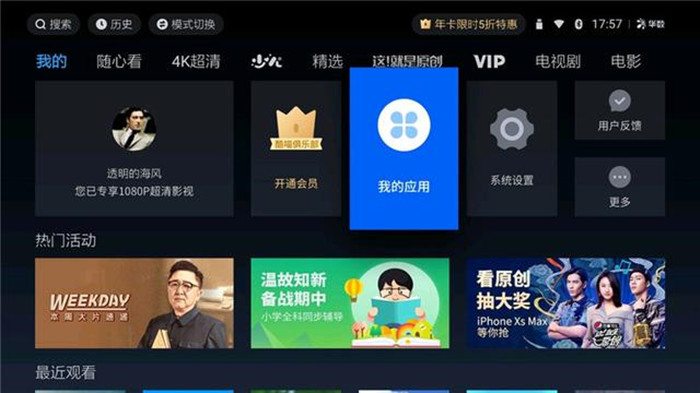 系统上,腾讯极光盒子4 Pro采用的是腾讯云视听极光OS系统,布局复杂,操作时找到应用并打开会比较繁琐,此外语音方面仅支持控制腾讯系的应用,其他暂不支持语音控制。