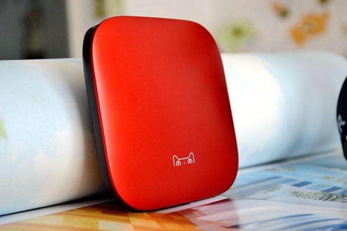 天猫魔盒4Pro算是一款比较经典的电视盒子,它的颜值在众多盒子中还是比较显眼的,顶部外壳依旧延续了抢眼的正红色,正面仅仅设计了天猫图标作为点缀,看起来非常亮眼,设计风格与家装百搭。整机尺寸仍保持在100×100×22mm,单手可以轻松持握,整体配色上由红黑拼接而成,外观还是挺亮眼的。