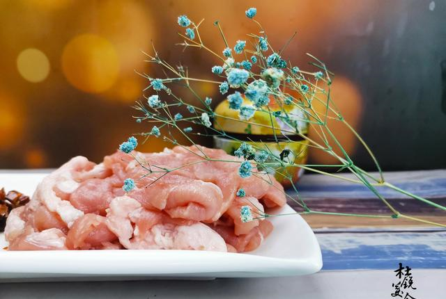 2、选用精肉或精五花肉150克,切成钱币厚薄的中等大小肉片;切葱花10克、指甲大小的薄姜片5克、蒜片10克;喜欢吃辣,准备干红辣椒小段5-10克。