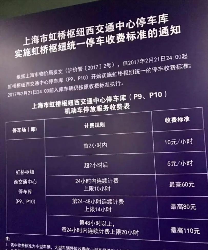 上海虹桥机场停车场收费标准