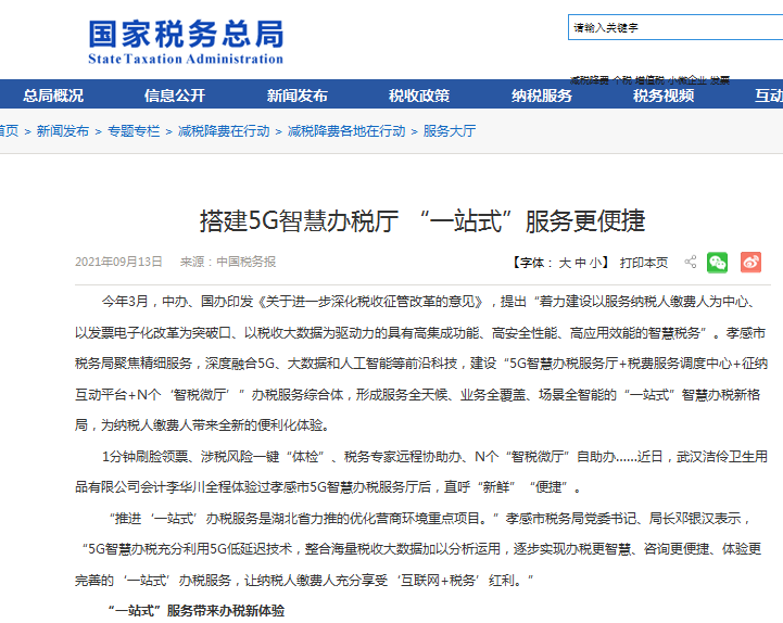 9月,全省首家5G智慧办税服务厅朝阳经济技术开发区税务局亮相。