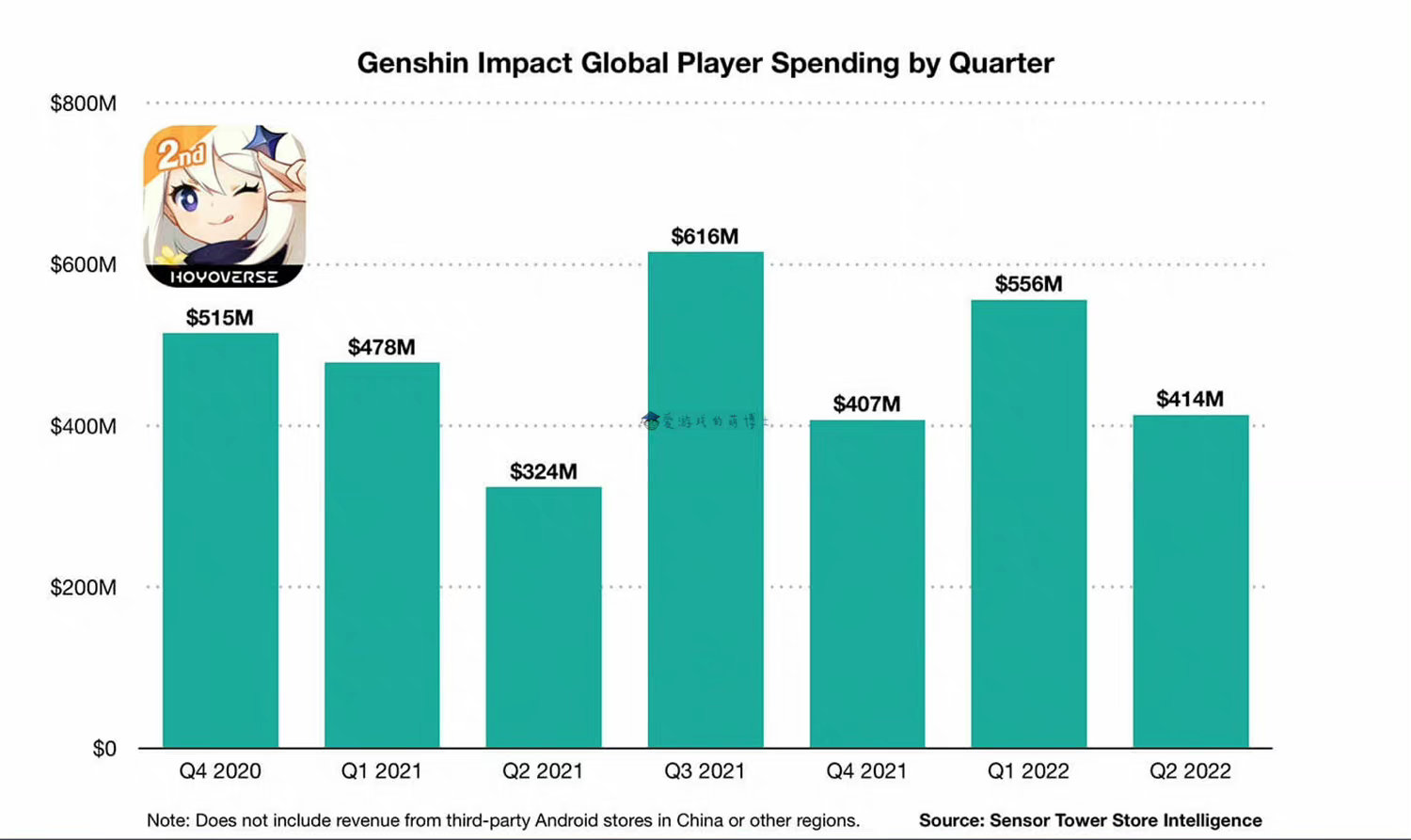 我们还记得:米哈游旗下的《原神(Genshin Impact)》是在2020年9月28日公测的,最近正在搞两周年的活动。经常看博士文章的小伙伴也知道:每个月我分享全球手游畅销榜的时候,《原神》基本上也在稳定在前三名。想必大家一定很好奇:这款游戏在推出的两年间一共赚了多少钱?粉丝们都清楚《原神》很赚钱,那么它的吸金能力到底有多强呢?