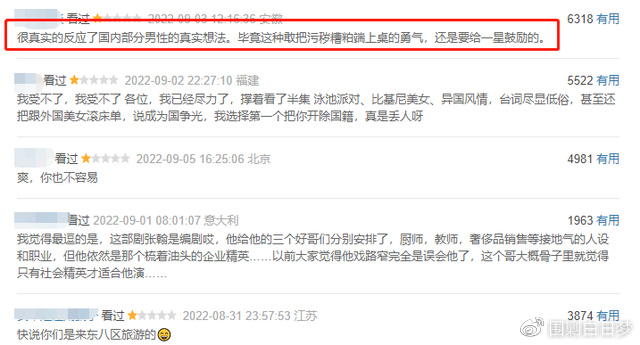 阿杠真诚的建议,包括张翰在内的所有编剧真的应该从天上到凡间好好看看,什么是真正的生活,什么是打工人的琐碎日常,什么是两性正常的交往经历,这些东西不是靠随便意淫就能诞生的。