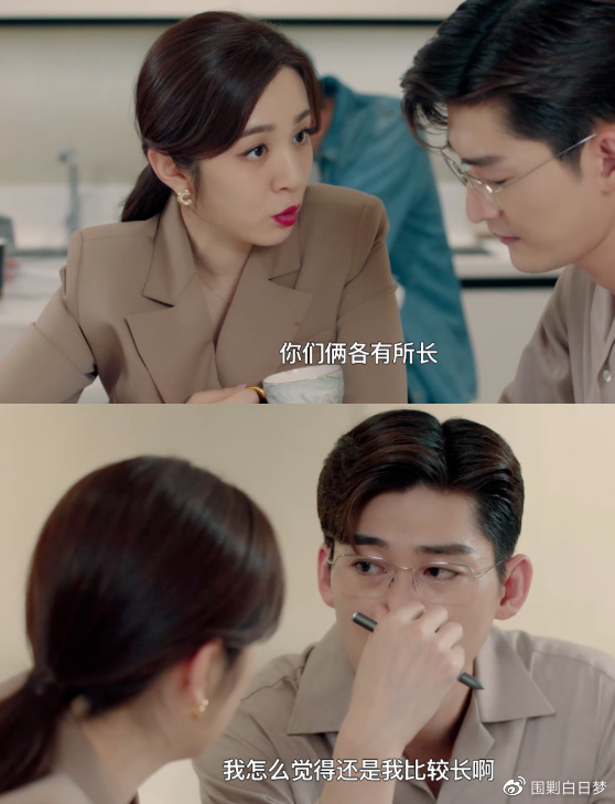 女主夸男主和另一个工作伙伴各有所长,男主:我怎么觉得我比较长啊。