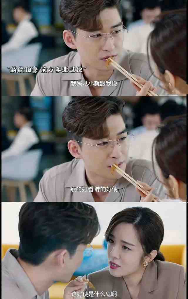 黄宥明饰演的厨师,见义勇为后对方请她吃饭,啥话都还没说呢,他就自信爆棚的觉得对方喜欢她。