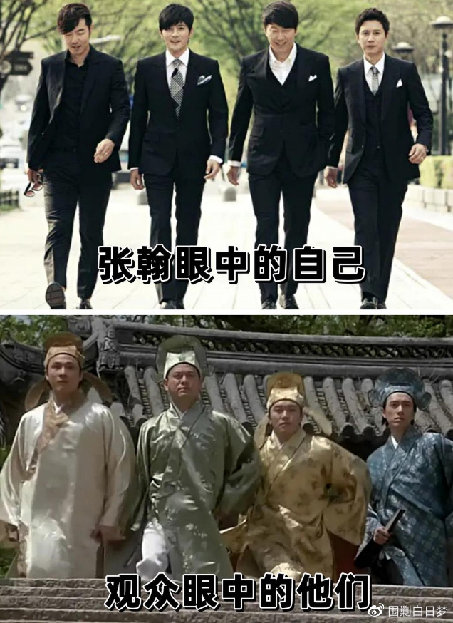 四个人西装笔挺的从直升机上下来,又装逼又油腻的开始摆造型,镜头还挨个给他们特写,就差把“哥哥好帅”打在脸上了。
