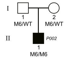 剩余的12例未解析患者,有5例存在CFAP43,CFAP44, 或 CFAP65的双等位基因突变,且这三个基因都编码鞭毛相关蛋白并在睾丸有特异表达或仅在睾丸表达。其中,CFAP43基因在三个患者中共发现5个突变(M1-M5), CFAP44在一个患者中检测到一个纯合突变(M6),CFAP65在一个患者中检测到一个纯合突变(因无父母样本确认变异来源,未进行后续研究)。