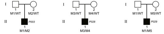 携带CFAP43双等位基因突变的患者及突变的来源情况