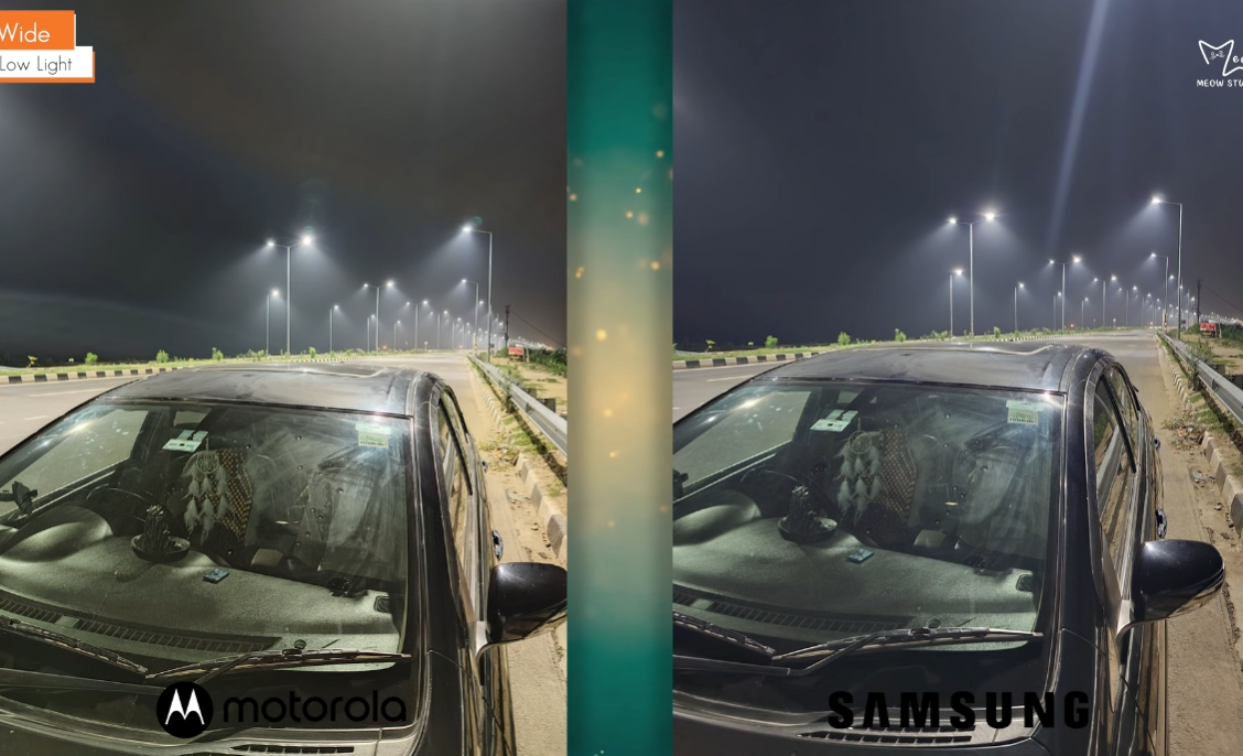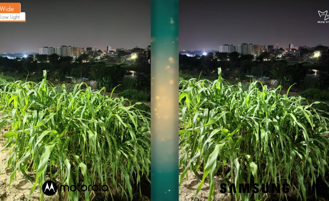 夜景主摄拍照对比,你可以发现两款手机直出的照片色彩截然不同,MotoX30Pro这边要更泛黄一些,而三星S22UItra依旧坚持输出高饱和度的照片。