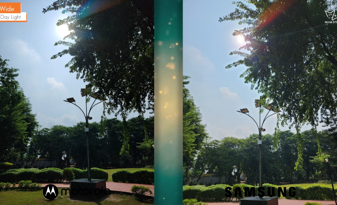 首先是白天主摄拍照对比,从直出的照片来看,三星S22UItra画面饱和度比较高,色彩更鲜艳,比如绿色更绿。而MotoX30Pro画面亮度更高一些,两款手机的表现各有各的优势。