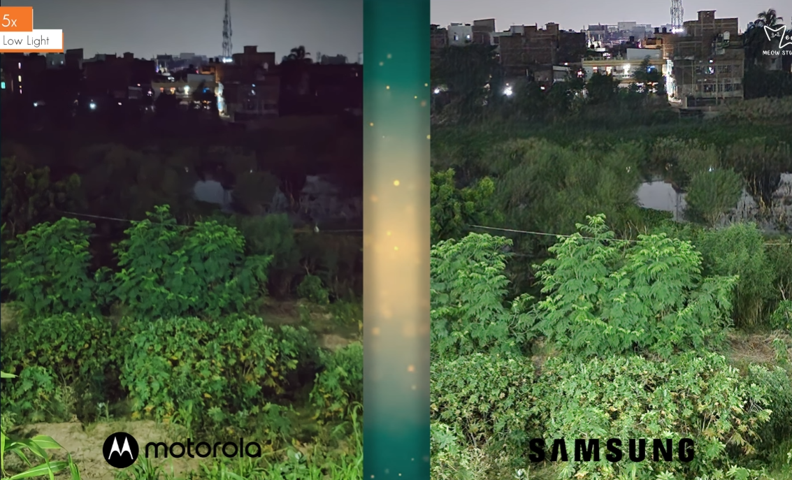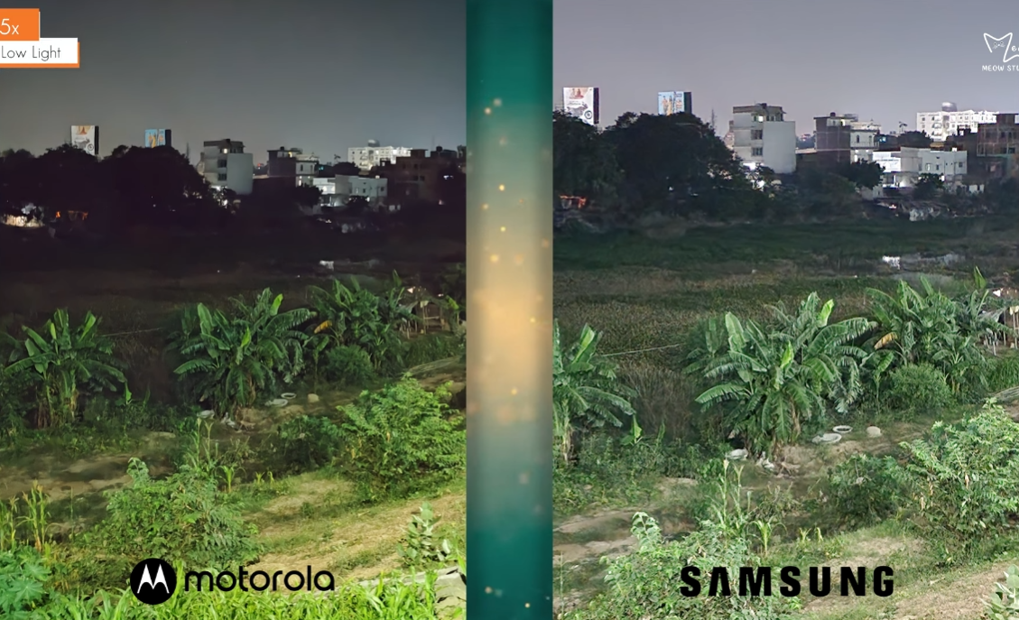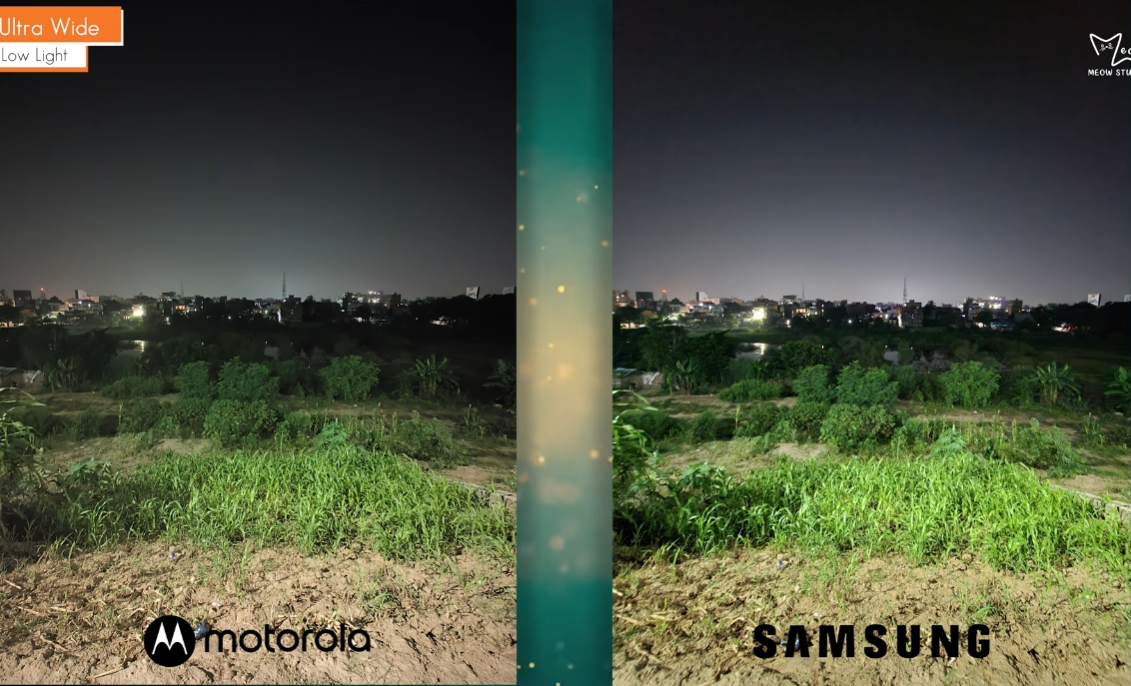 第二张主摄夜景拍照对比,MotoX30Pro的画面亮度要更高,暗部细节更丰富,比如近景中的暗部环境。三星S22UItra并没有大幅提升画面亮度,但画面观感感觉更舒适。