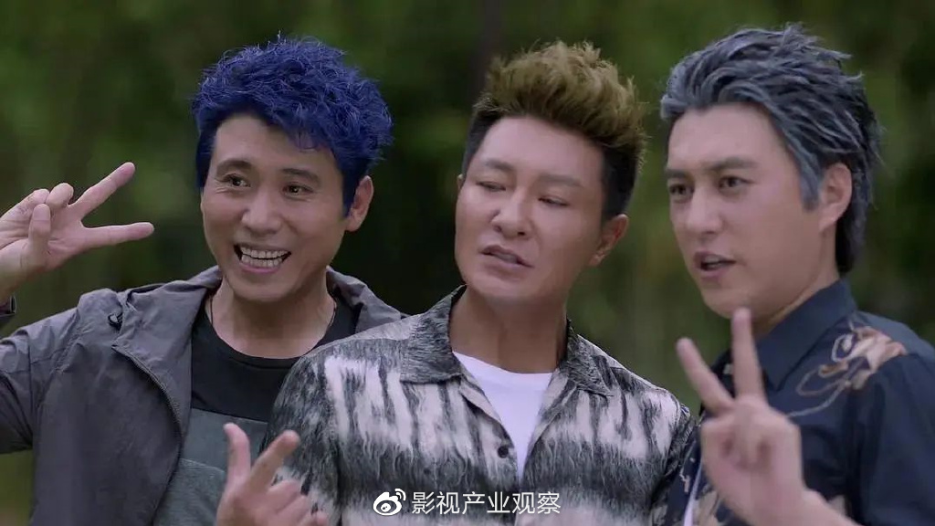 三个中年大叔直接玩起了小年轻“非主流叛逆”那一套。头发染得五颜六色,还穿起了自以为紧跟潮流的衣服,但殊不知略微发福的身材和隐约可见的啤酒肚,已经给他们蒙上了一层油光。更不用提后面喝酒蹦迪、谈恋爱、放飞自我,深夜在马路上踹别人车等一系列行为,这些本就格格不入却硬要向年轻洒脱、不服输上靠的情节,只会让观众感到违和与反感。