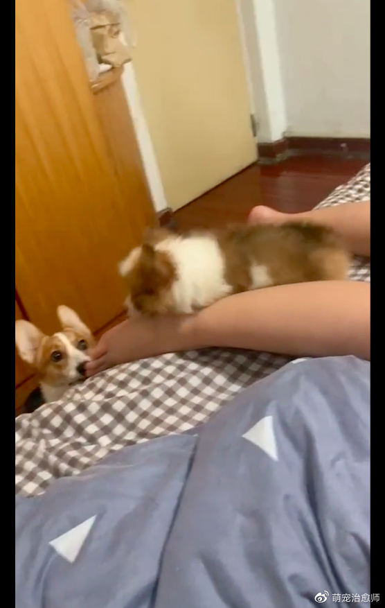 就有这么一位网友,家里养了只柯基。网友有个规定,就是不准狗狗上床上来,因为会把床给弄脏。柯基倒是很守规矩,就再也没有上床过。这一天网友又去买了只小柯基回来,初到家里面,主人对它是百般的疼爱,连些规定都让它打破了,比如就是它可以在床上跑来跑去的。