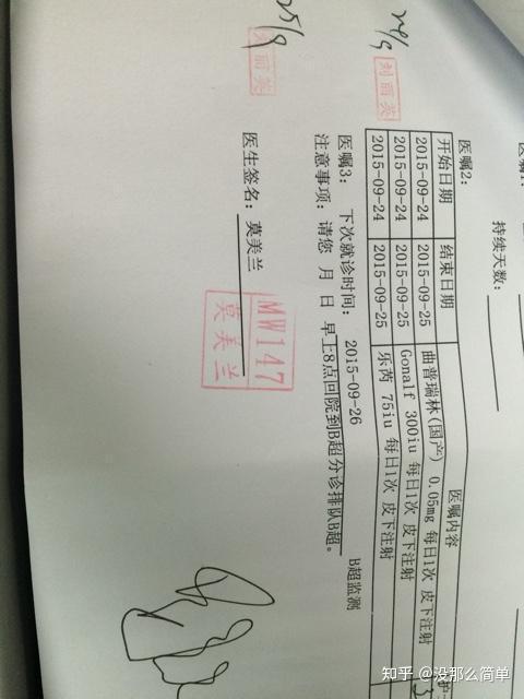 因为交了押金,所以促排开始就不用每次缴费去药房拿药了,说促排开始药费都是直接从押金里扣的,我觉得这个很方便,如果每天回院打针的,那个医嘱单也是存在注射室,每天来的时候上5楼的分诊台取号和拿回自己注射单,这样可以避免我们漏了单不记得带来,每天打完针,注射的护士会在当天日期那里盖章,表示这天打过。打完医嘱上的几天针后,最后那天她们会把医嘱单还给你,第二天拿那个医嘱单去4楼分诊台取号做B超。每次新的医嘱单会钉在旧的上面,自己一番就很清晰促排一路以来用了什么药用了多少了。