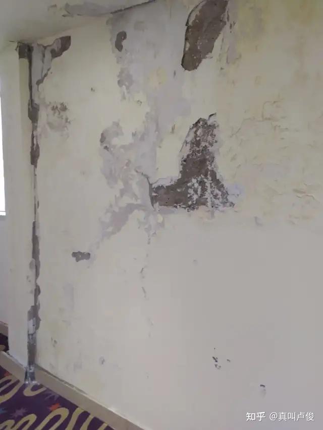 长期不装修,房子难免出现问题。在宾馆外围墙,墙面脱落,里面也有因为潮湿而泛着青苔的地方